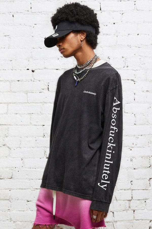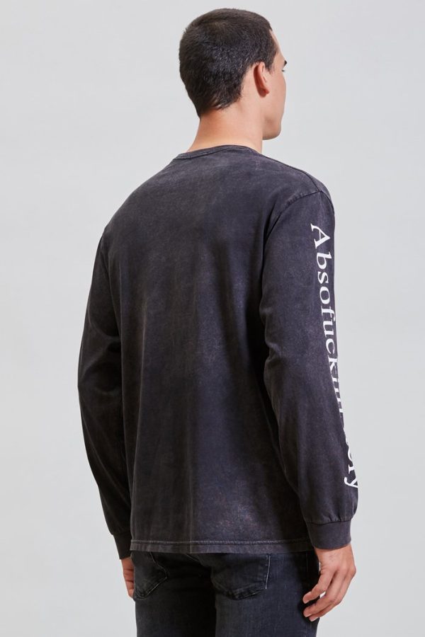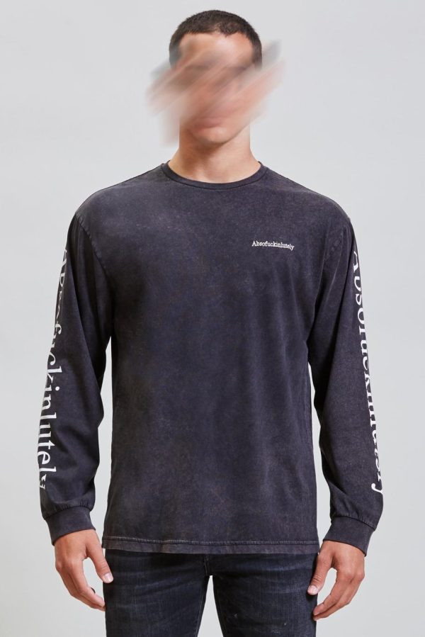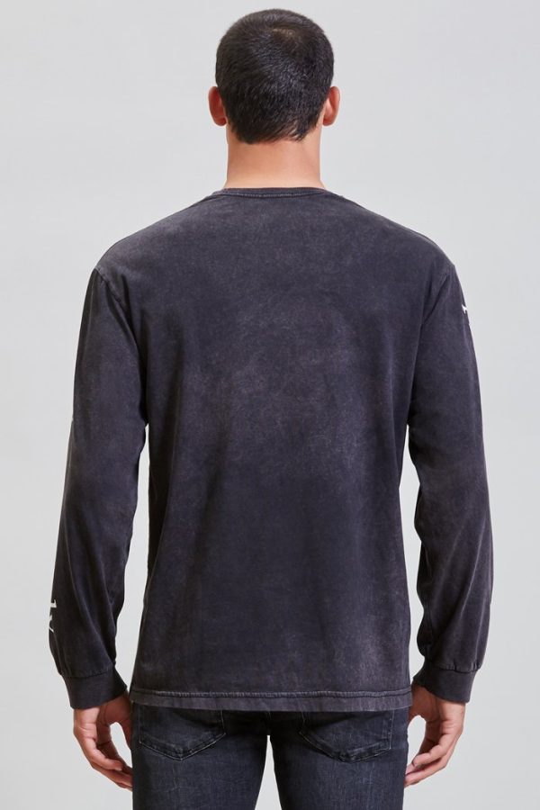 Classic crewneck long sleeve t-shirt made from Japanese cotton and enzyme washed for softer hand feel. Screen printed at both sleeves and embroidered on left chest.