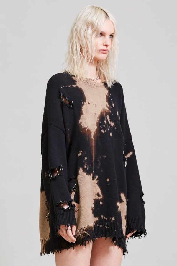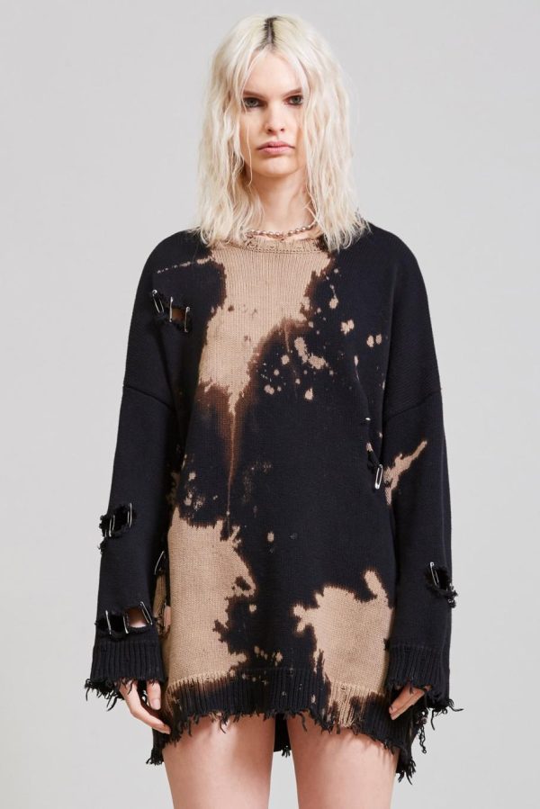 Bleached Distressed Crewneck Sweater | Women R Sweaters