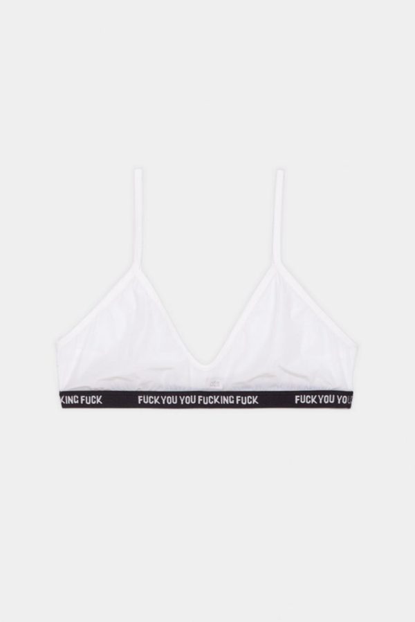 This is a USA made classic bralette with matte micro nylon. Designed with triangle cups and a black and white FYYFF waistband.
