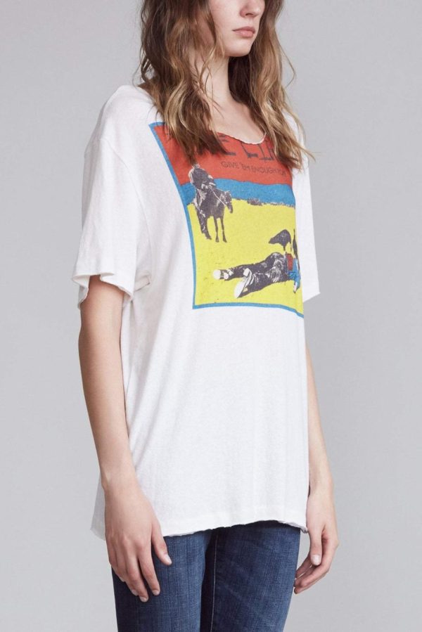 Clash Rosie T is made from recycled Japanese cotton jersey. The digital graphic is a digital print of official clash artwork. Raw cut neckline for a distressed look. The tee has been washed with enzymes and stones to make the garment soft to the touch.