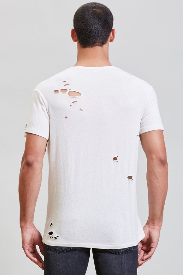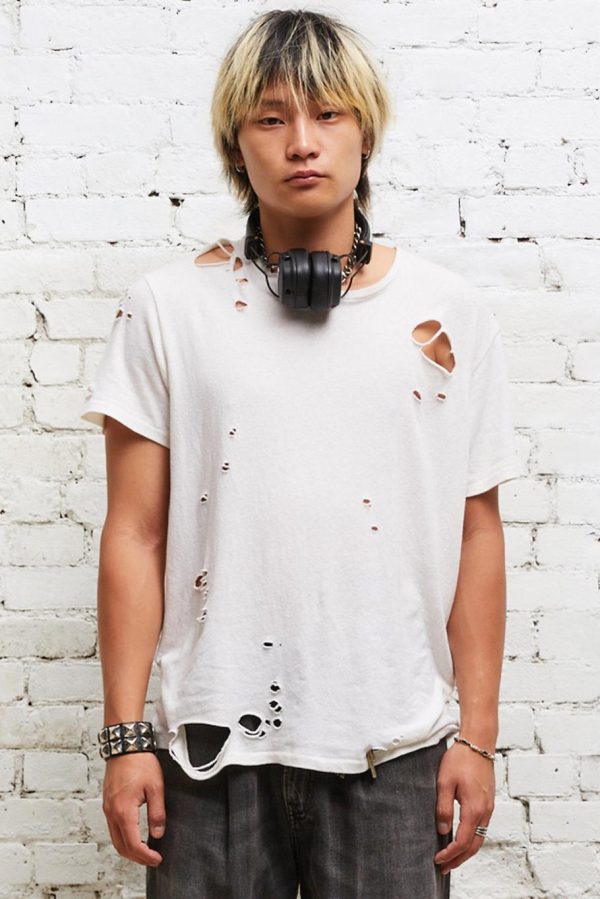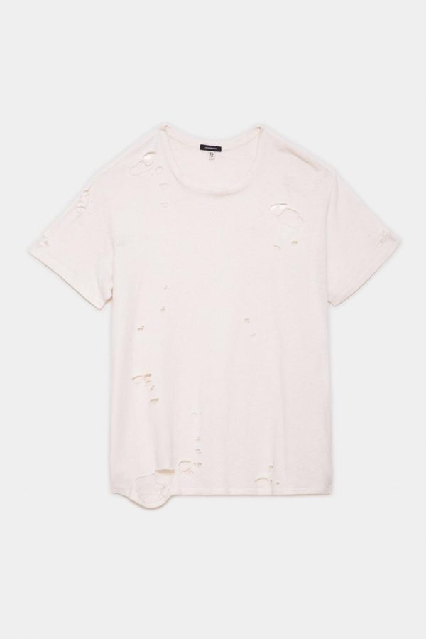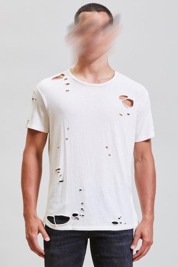 Destroyed Boy T in Ecru is made from Japanese recycled cotton. Light distressing with holes and rips throughout body. This tee has been acid and stone washed to make the garment soft to the touch.