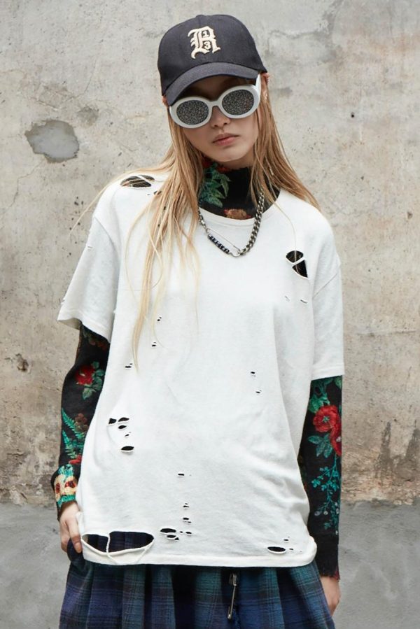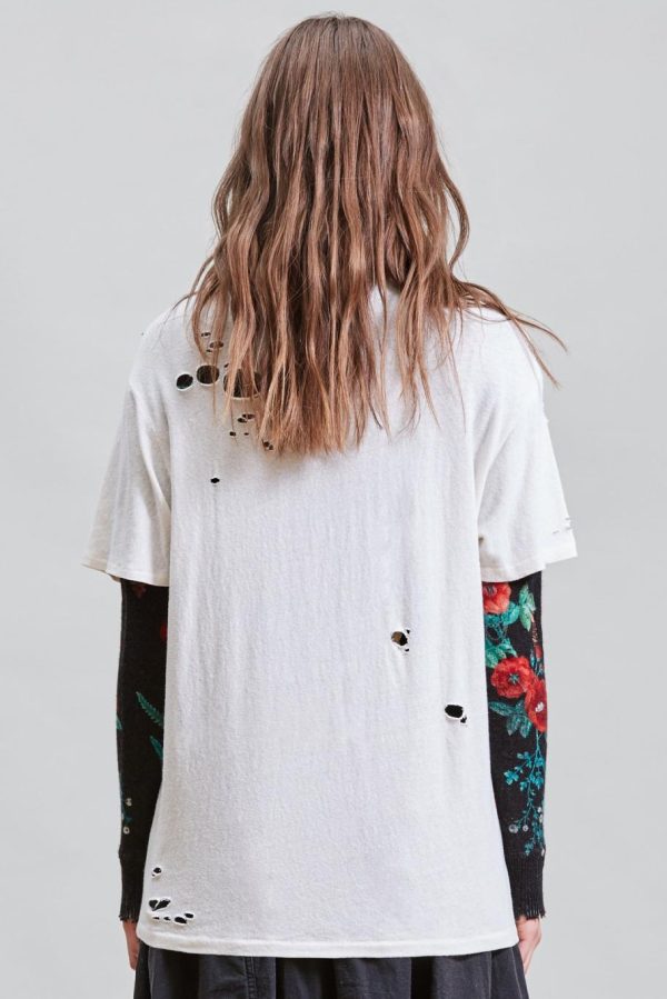 Destroyed Boy T in Ecru is made from Japanese recycled cotton. Light distressing with holes and rips throughout body. This tee has been acid and stone washed to make the garment soft to the touch.