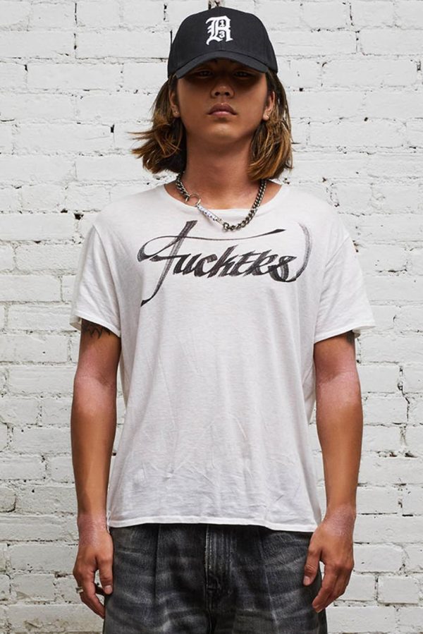 This t-shirt is made of a proprietary knit fabric using the highest quality combed cotton and worsted cashmere yarn from Japan. Both yarns are then knitted in a loose jersey to achieve softness and luxurious appearance that is unmatched.