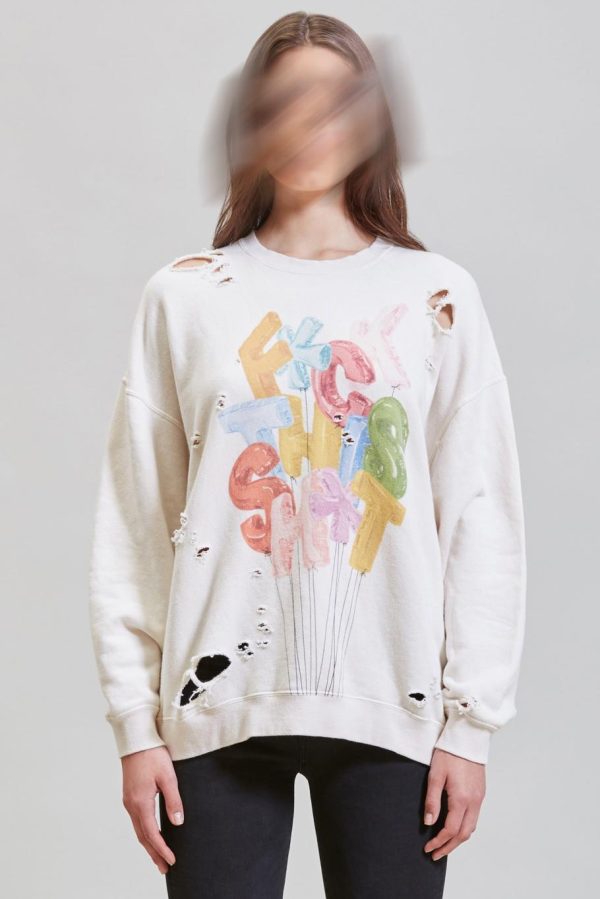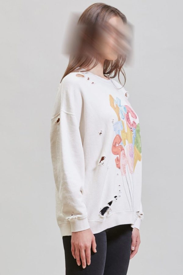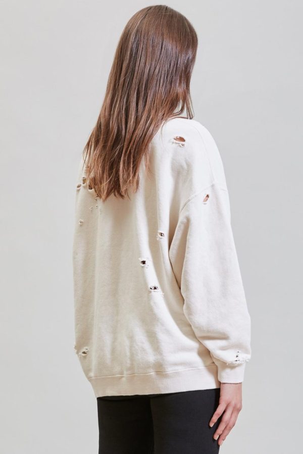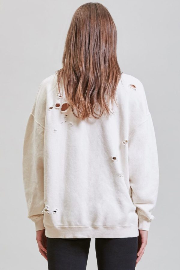 Classic crewneck sweatshirt made with Japanese terry cotton. Sweatshirt has been enzyme stone-washed for a softer hand feel. Distressed throughout for deconstructed look.