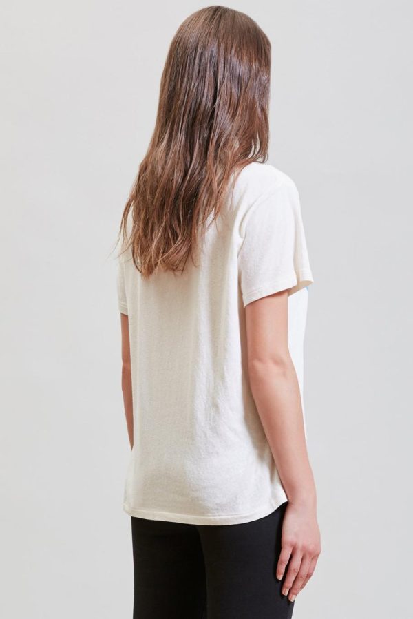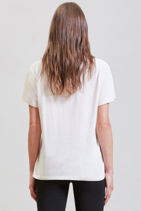 Classic crewneck boy T made with recycled Japanese cotton. Shirt has been screen printed on chest and enzyme washed for softer hand feel.