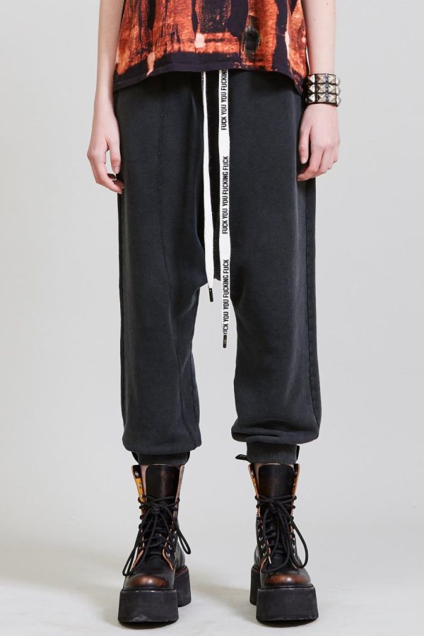 Twister drop sweatpant made from Japanese cotton lyocell terry. Relaxed fit with dropped crotch, twisted seams detail and printed FYYFF drawstring. Sweater has been washed with Enzyme and Stones to make the garment soft to the touch.
