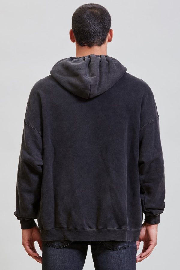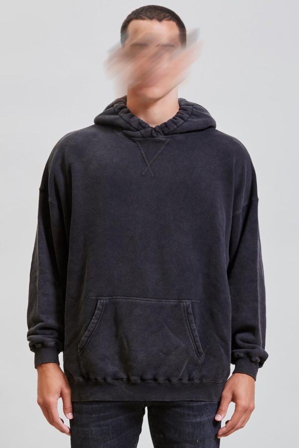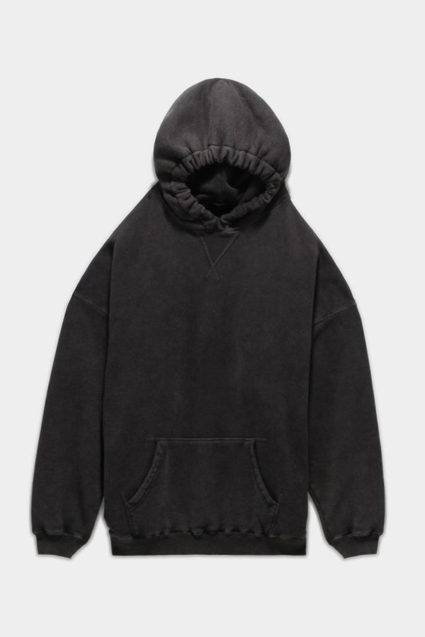 Oversized hoodie with elasticized edge detail at hood. Sweatshirt made from Lyocell enzyme stone-washed Japanese Cotton for softer hand feel.