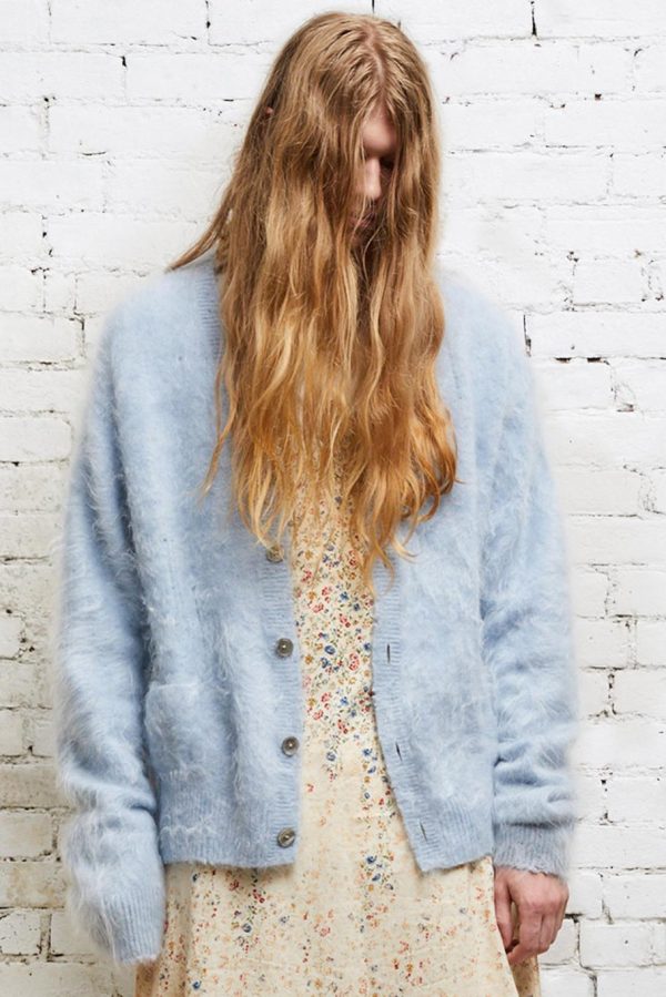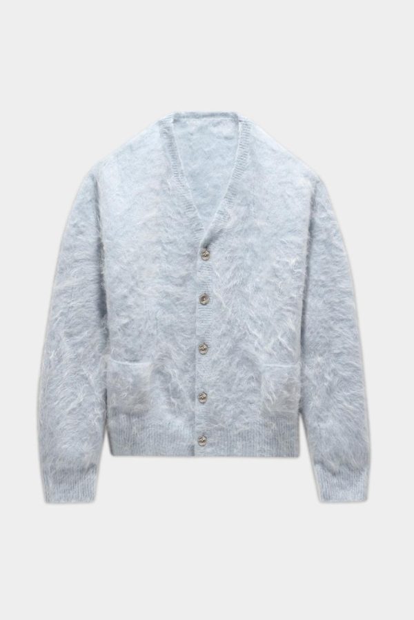 Oversized cardigan made from Japanese brushed cashmere. Lightly distressed at hems, cuffs and pockets.