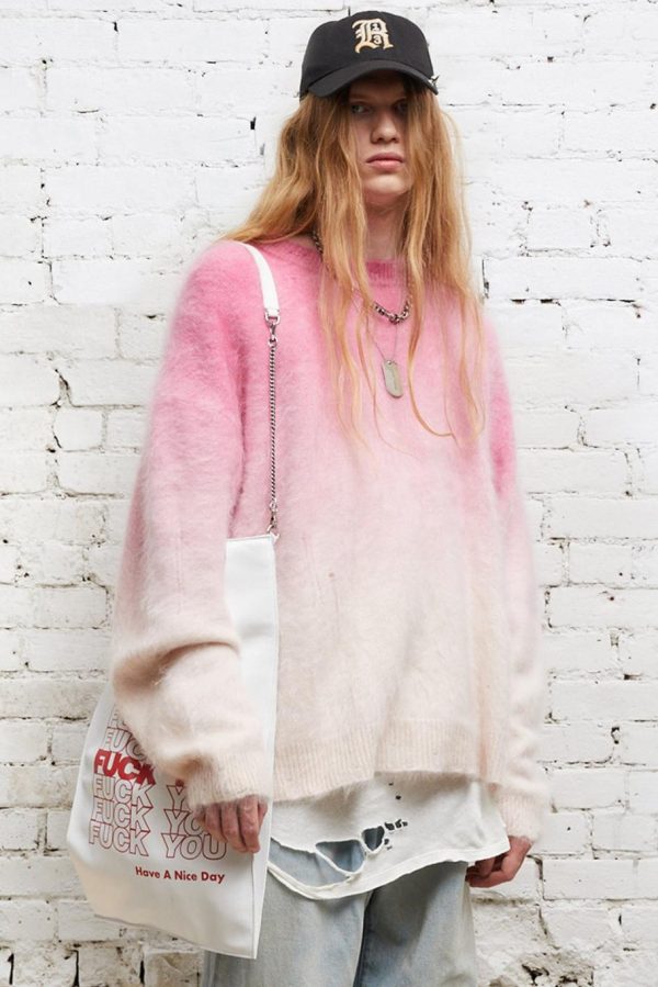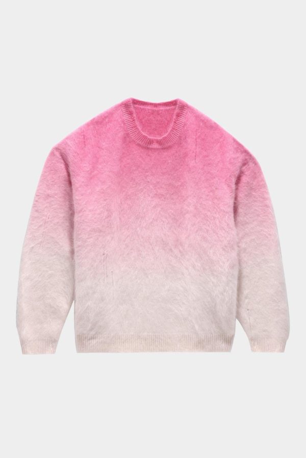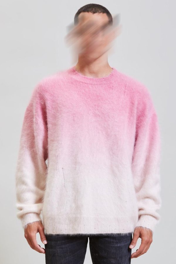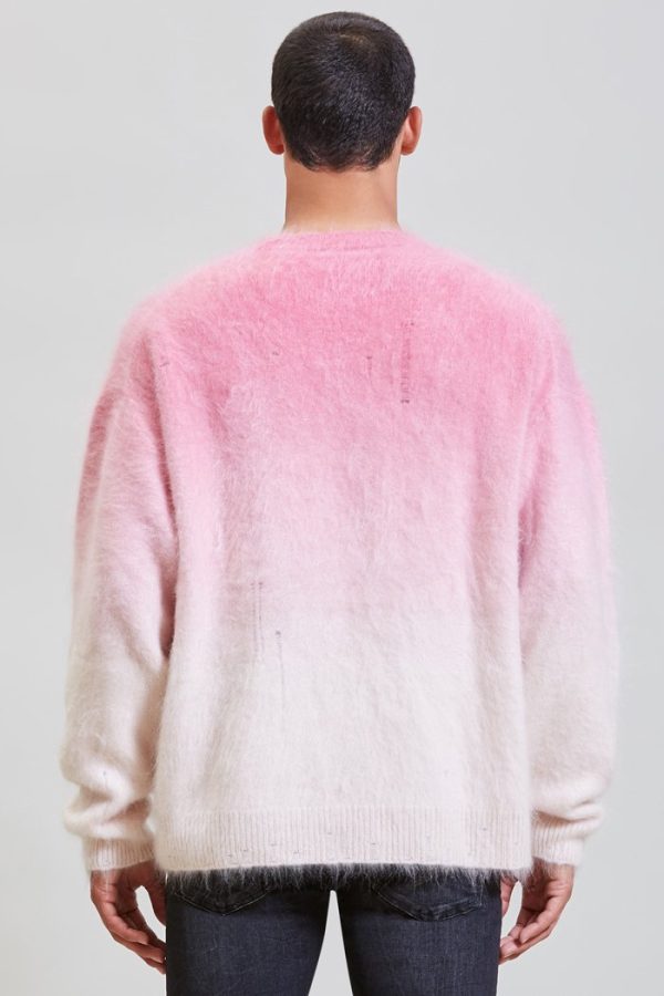 Oversized crewneck sweater made from Japanese brushed cashmere. Sweater is distressed throughout and dip-dyed for gradient effect.