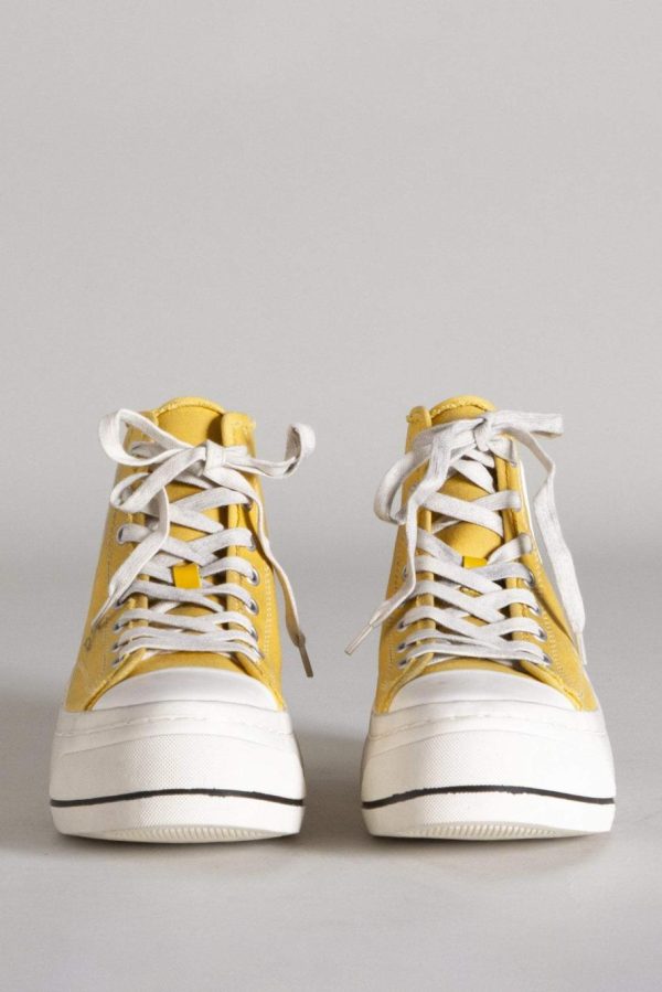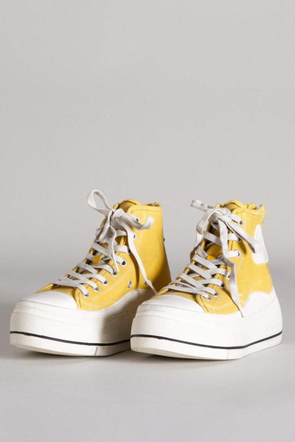 Classic Canvas high-top sneaker with lace-up closure, hand stitched platform and toe cap.