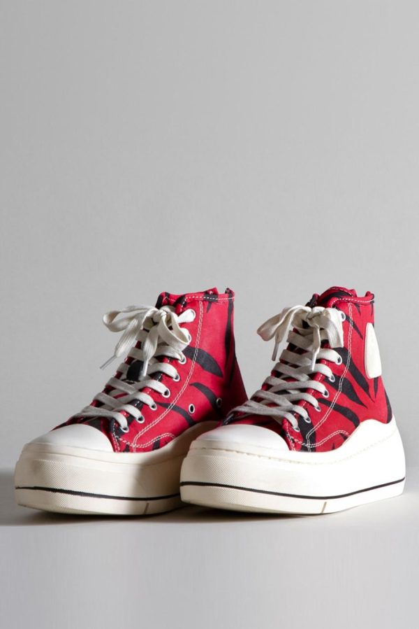 Classic Canvas high-top sneaker with lace-up closure, hand stitched platform and rubber toe cap.