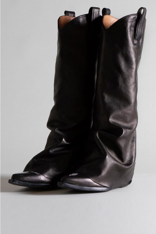 Mid Cowboy Boots With Sleeve Black Leather | Women R Boots