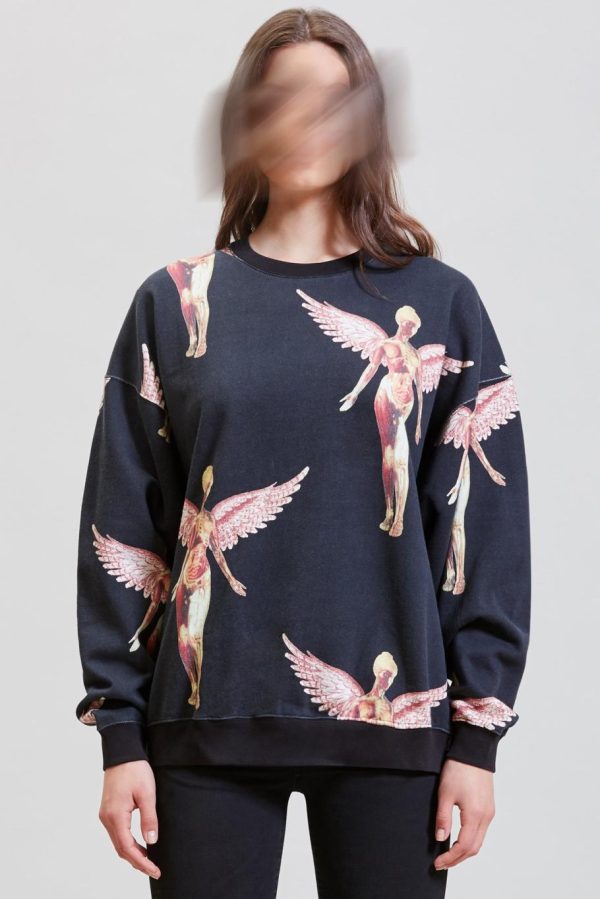 Nirvana in Utero Oversized Crewneck is made from digitally printed brushed black terry cotton.