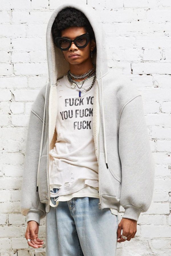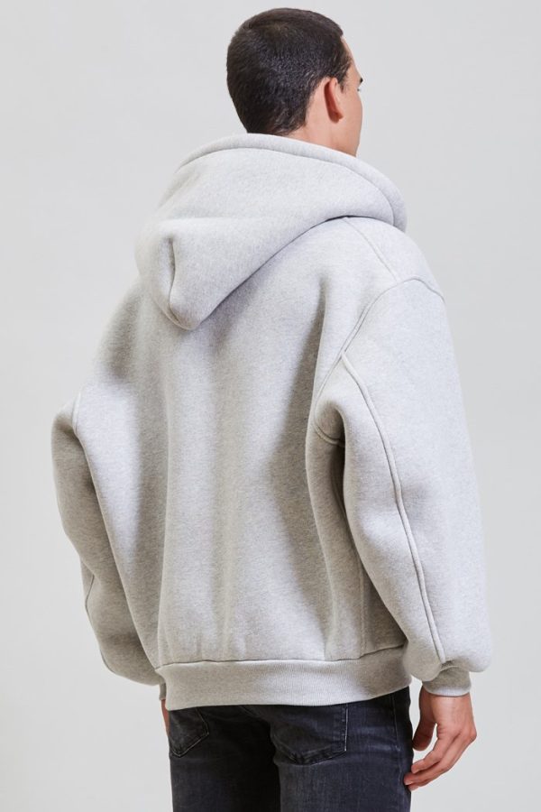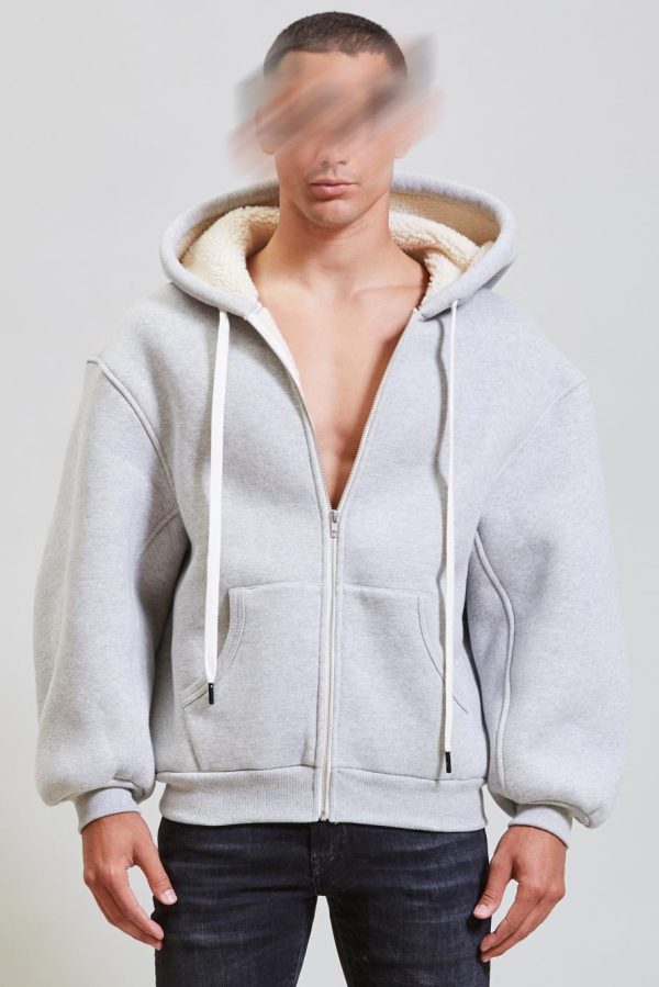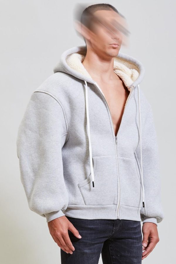 Oversized Heavy-weight zip up fleece with drawstring hood . This hoodie was made with Japanese cotton and bonded sherpa lining.