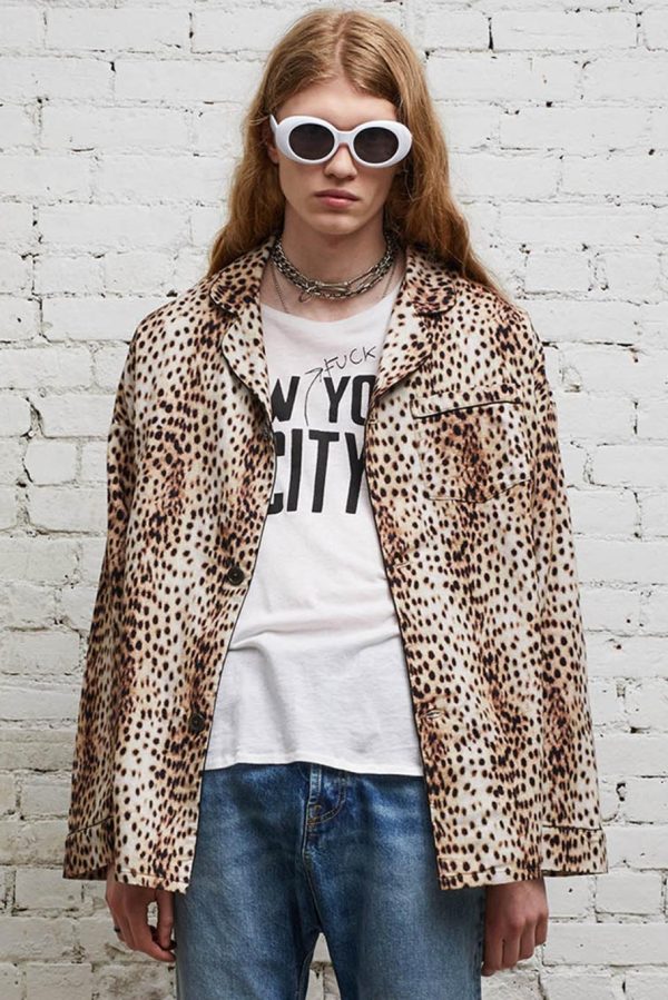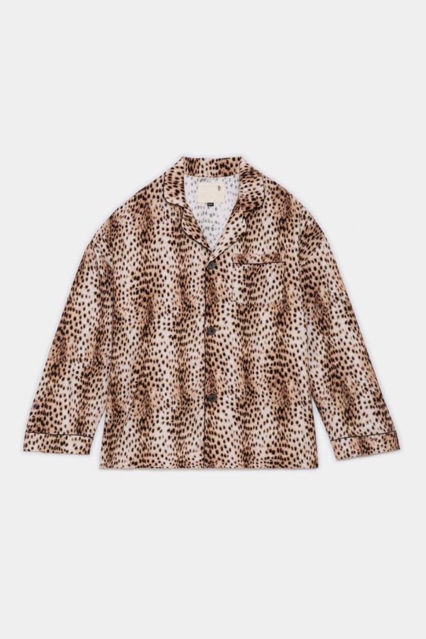PJ Top in Cheetah is made from printed flannel. Oversized Silhouette with black piping detail. Top has been washed with Enzyme and Stones to make the garment soft to the touch.