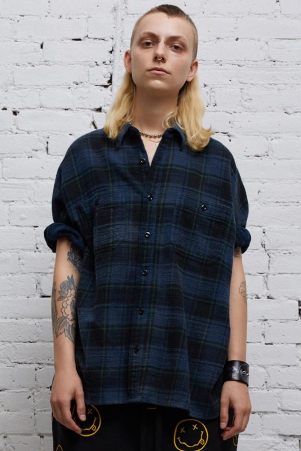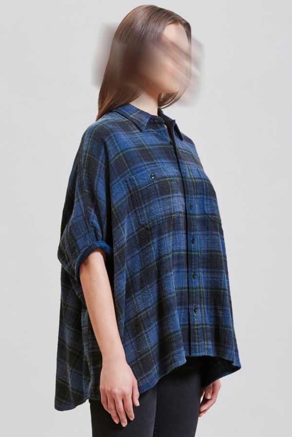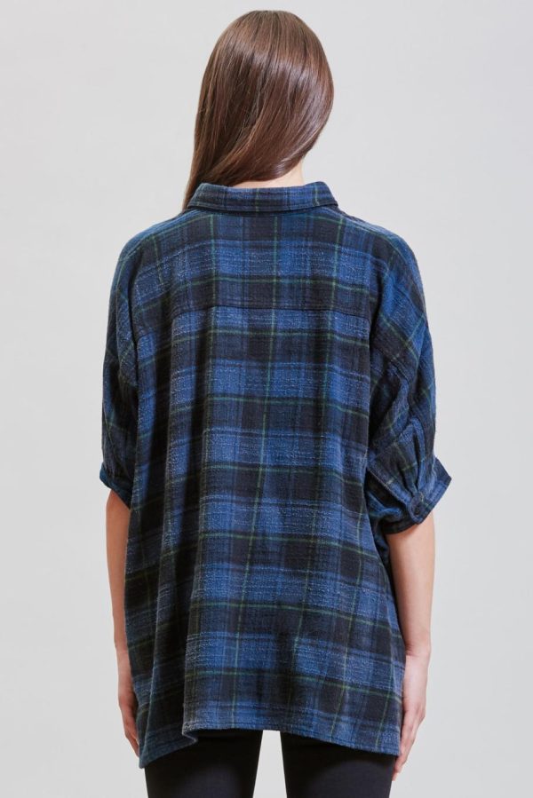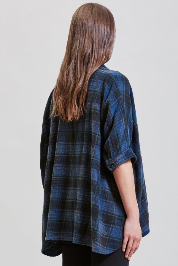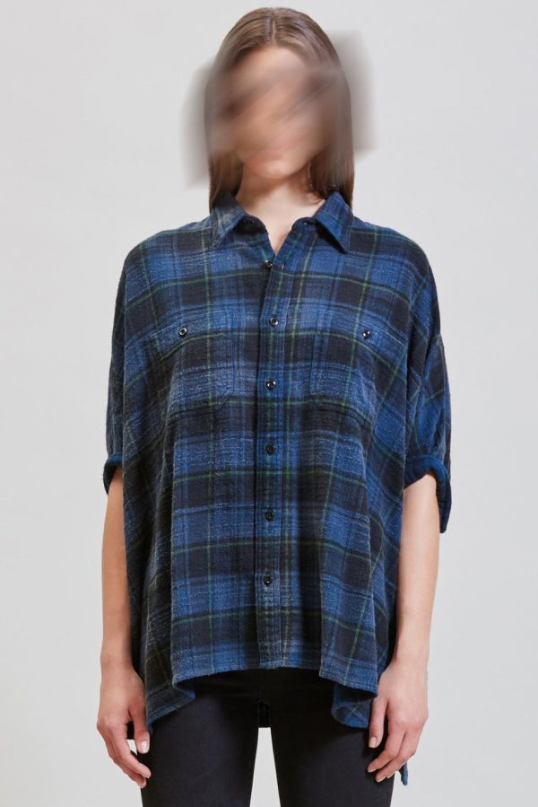 Oversized boxy button up shirt. Japanese plaid washed with enzymes for soft hand feel.