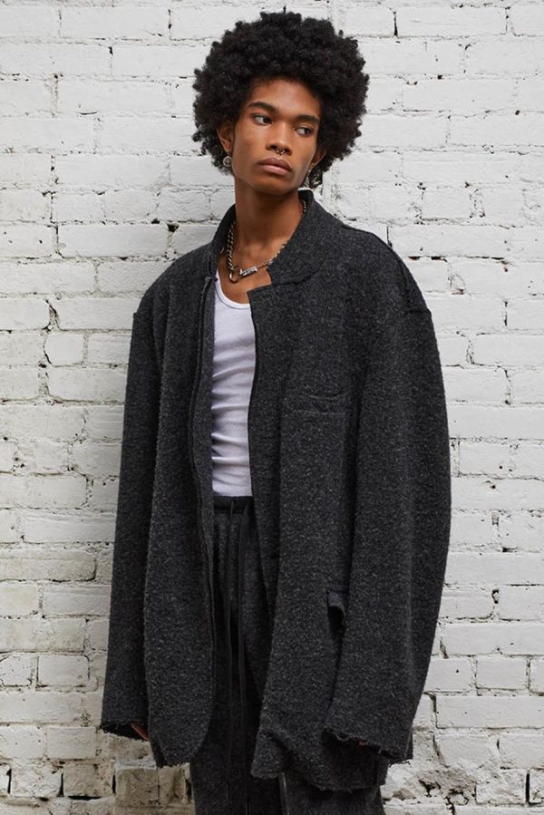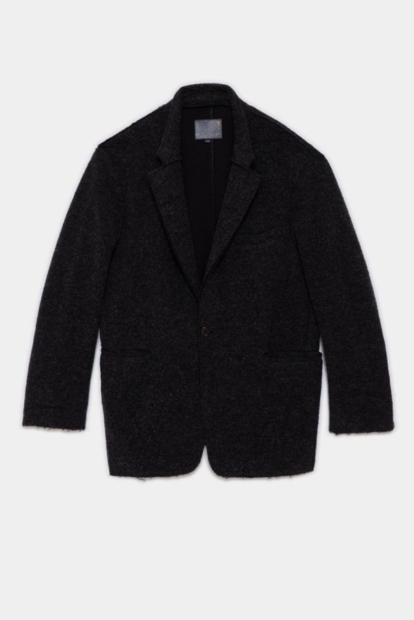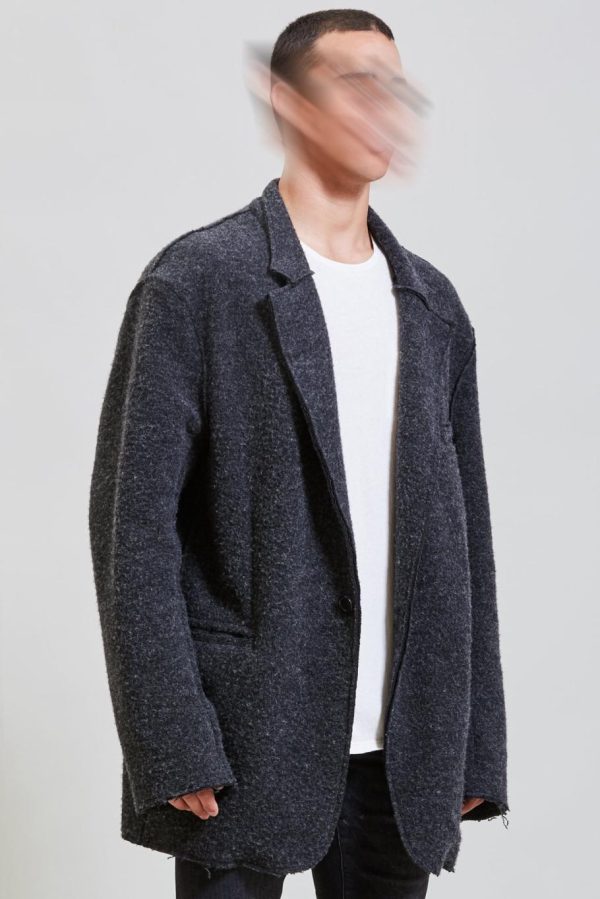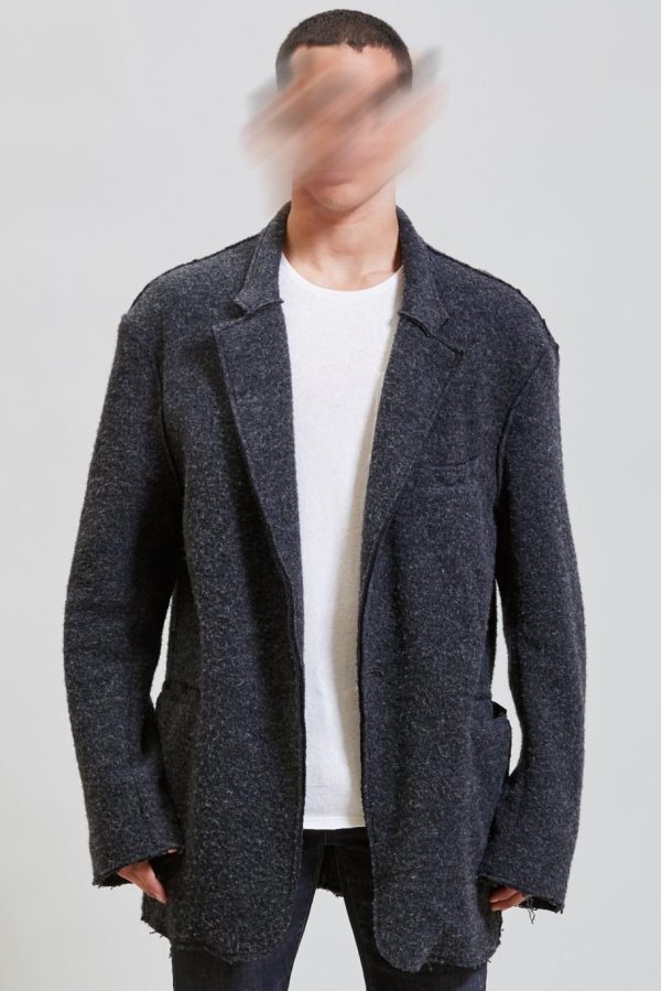 Raw Cut Ragged Blazer made with Japanese brushed terry with smooth inside backing. Oversized silhouette with raw seam details throughout