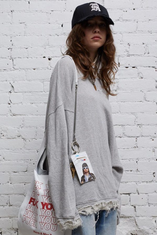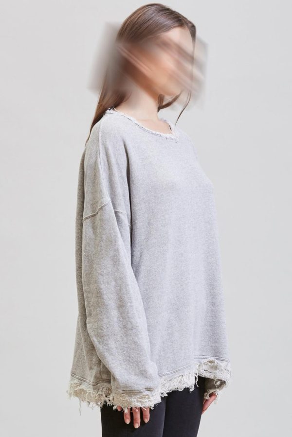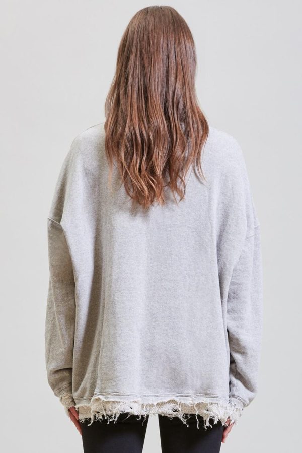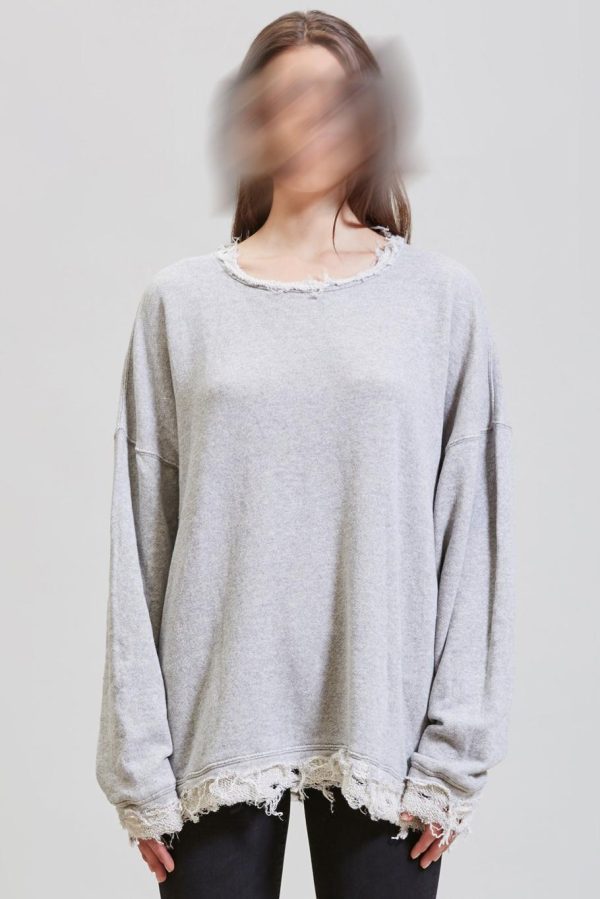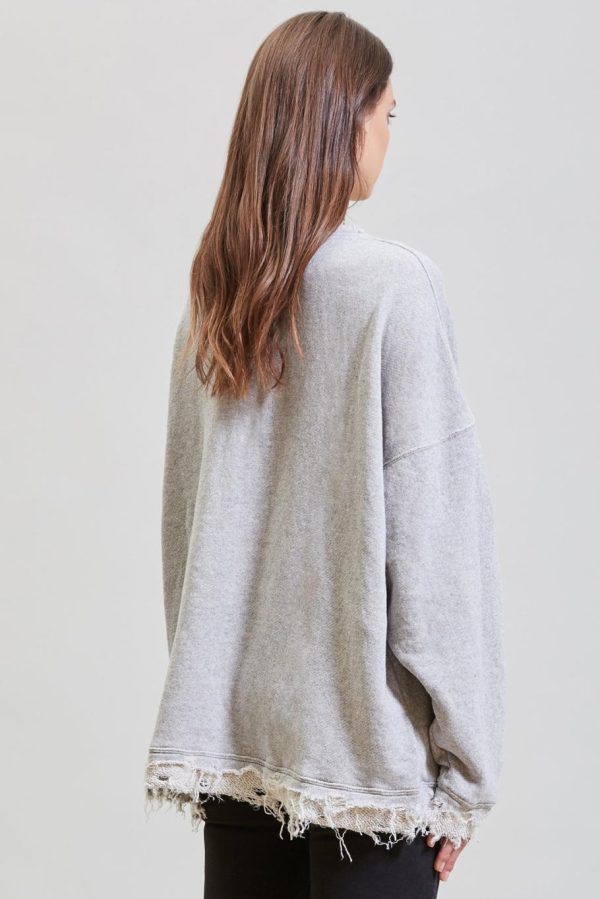 Oversized crewneck sweatshirt made with enzyme stone-washed Japanese loose terry for softer hand feel. Shredded edge details for deconstructed look.