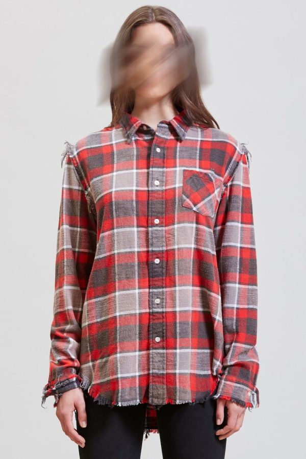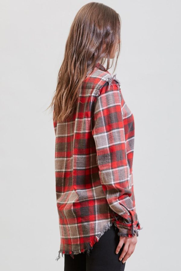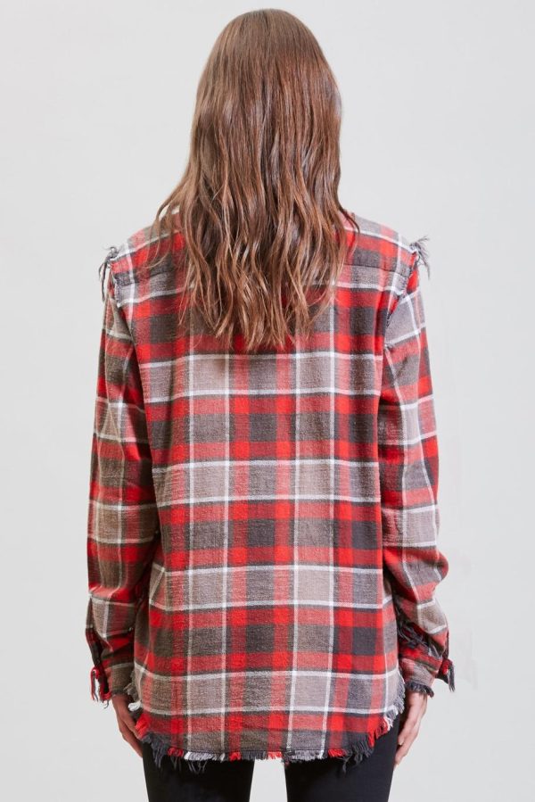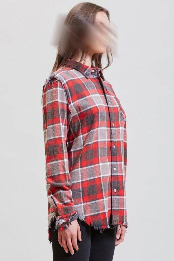 Shredded Seam Shirt Red And Grey Plaid | Women R Tops